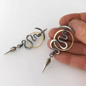 Big, Fun, Hot, snakes in geometric-designed dangle drop earrings for pierced ears. brand new never worn. Alloy and steel metal. Safe for sensitive ears with hypoallergenic posts.