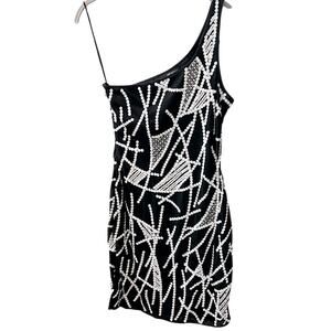NWT! $300+ JAYGODFREY / REVOLVE black dress with silver and white sequins one shoulder mini 2