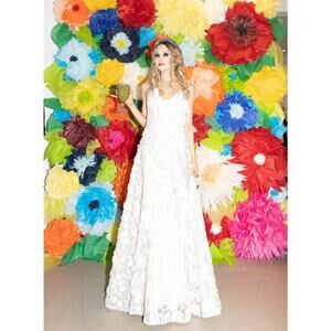 NWT $3000 ALICE + OLIVIA DOMENICA EMBELLISHED BALL GOWN DRESS Sz 2 White Bridal Bride wedding dress ceremony rehearsal engagement party proposal designer luxury cocktail event occasion special floral flowers cruise brunch resort vacation