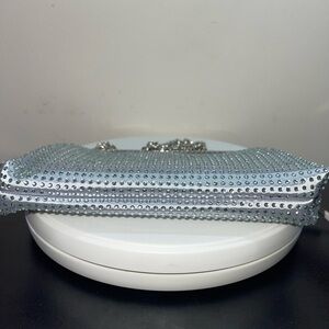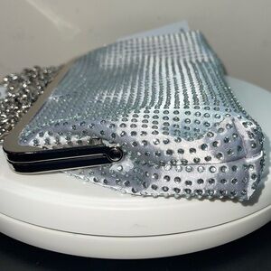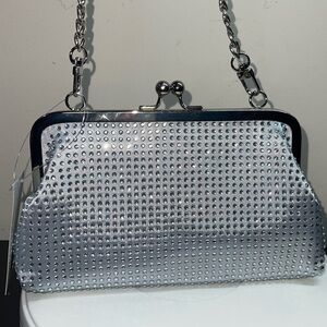 NWT Sweet Temptation Silver & Rhinestone Crossbody Bag. 8” X 5”. Silver Hardware & Removable Chain