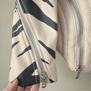 NWT 3.1 Phillip Lim nude zebra striped peplum motorcycle leather jacket …