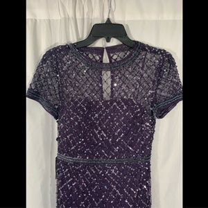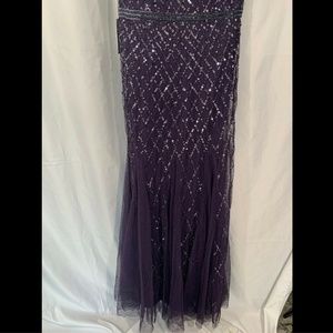 NWT $318 Adrianna Papell Beaded Mesh Godet Gown in Prune Purple [SZ 2 ] #F650