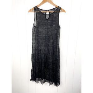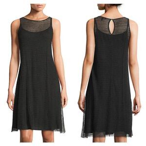 NWT $318 Eileen Fisher Sheer Hemp Herringbone Lace Open Knit Tank Dress Black