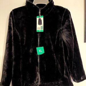 NWT 32 Degrees Heat Fleece Jacket Womens XL Black Full Zip Up Plush Pockets