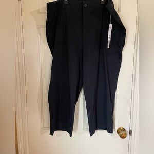 NWT 32 Degrees Heat Pants Women XXL Black Pockets Button Pull On Cropped NEW