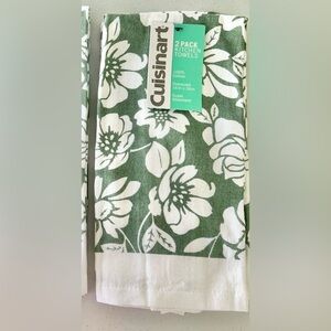 NWT! 3-2 Packs Oversized Packs Cuisinart Floral Green and White Kitchen Towels