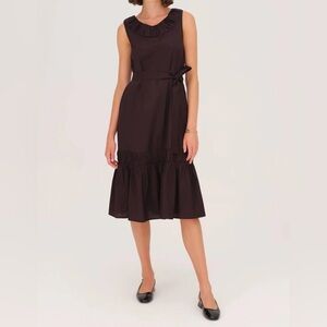 The perfect mini dress for those warmer months. Elevate your wardrobe with the Naveen Dress by HARSHMAN, a timeless piece perfect for any occasion. This sleeveless dress features a scoop neckline and a removable self-tie waist belt, adding versatility to its classic A-line silhouette. Crafted from 100% cotton, it boasts a midi length with a charming ruffle hem and trim for a feminine touch