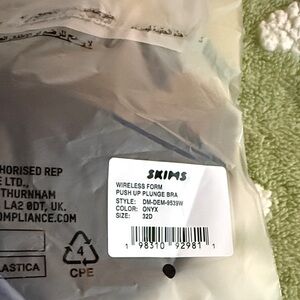 NWT 32D Skims wireless form push up plunge bra, onyx