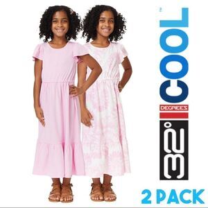 NWT ☀️ 32 Degrees Youth Girls 2-pack Maxi Dress Pink Solid & Pink Tie-Dye Print. Perfectly Cool and Comfortable for Spring and Summer. Versatile, can be dressed up or worn casually.