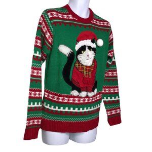 NWT 33 Degrees Santa Claus Cat Sweater Mens L Ugly Pullover Funny Party Striped