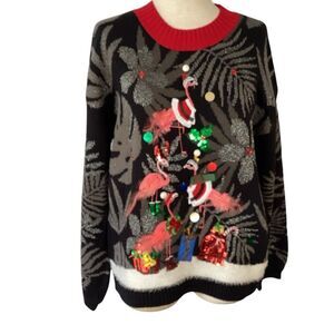 NWT 33 Degrees Ugly Christmas Sweater Flamingo Sequin Large