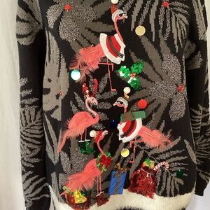 NWT 33 Degrees Ugly Christmas Sweater Flamingo Sequin Feathers Large