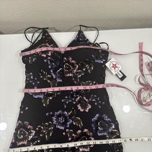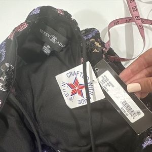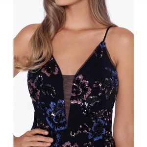 NWT $330 Betsy & Adam [ 10 ] Mesh V Neck Floral Sequin Gown in Black #G1227