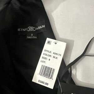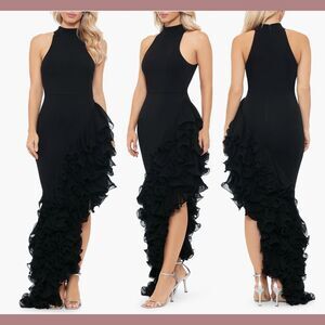 NWT $340 Betsy & Adam [ 8 ] Ruffle Detail Asymmetric Body-Con Ponte Gown Black