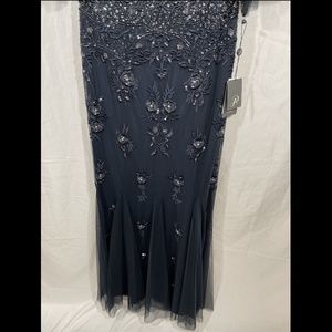 NWT $349 Adrianna Papell Floral Beaded Gown Flutter Sleeves Midnight [SZ 0 ] Q55