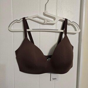 NWT 34D (Sz7) Knix Brown Wireless Bra with inlet for side coverage multiple snap