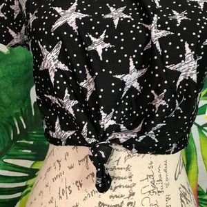 NWT $35 SO Juniors Small Star Print Knot-Front Crop Swim Tee