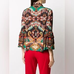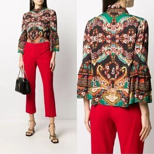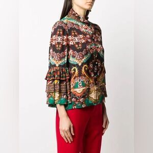 NWT $350 ALICE + OLIVIA Liberty Ruffle-Neck Blouse - Black
