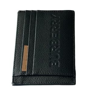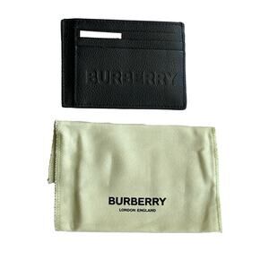 NWT $350 Burberry Logo Embossed Grained Leather Black Card Case 8052878