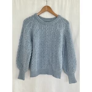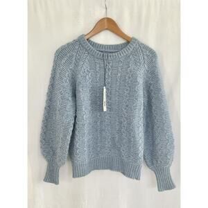 NWT $350 Rebecca Taylor Cable Knit Sweater MEDIUM Misty Blue Pullover Wool Blend