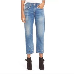 NWT $350 rag & bone Vintage High Rise Crop Jeans Hyfield Eyelet [ SZ 27 ]