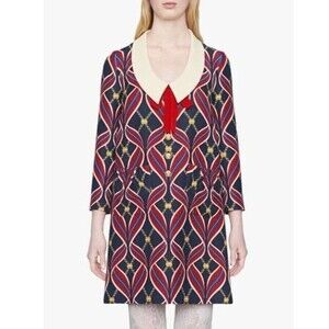 NWT. $3500 GUCCI Printed Dress Size IT40. Dark blue red