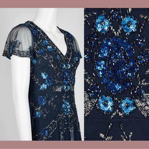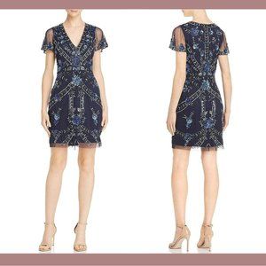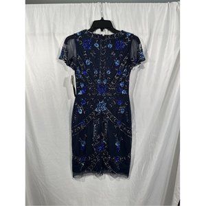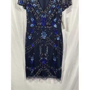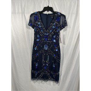 NWT $372 Aidan Mattox [ 0‎ ] Embellished V-Neck Cocktail Dress in Twilight BLUE