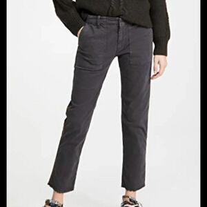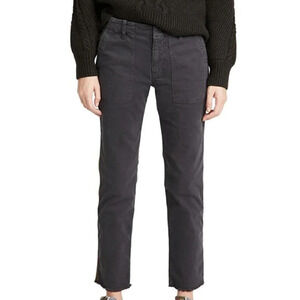 NWT $375 Nili Lotan Jenna with Tape Crop Fray Pants Gunmetal 2 Fray Stretch