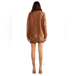 NWT $395 Cynthia Rowley Brown Cozy Cargo Sweatshirt Satin Dress L | Pockets