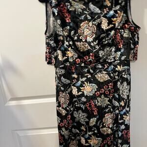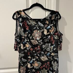 NWT $396 Eva Franco 10 M Velvet Floral Hi Lo Ruffle Maxi Dress