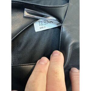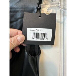 The NWT Ieena for Mac Duggal Keyhole Neck Leather Dress in size 0 is a stylish and edgy option for those looking to make a statement. With a biker theme and a mini length, this black leather dress is perfect for a graduation or work event. The keyhole neck adds a touch of sophistication to this bold and fashionable piece, making it a versatile and eye-catching addition to any wardrobe.