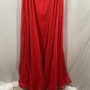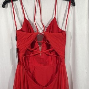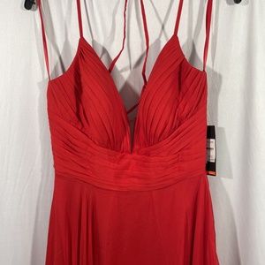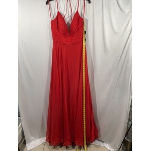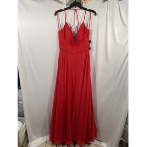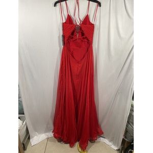 NWT $398 La Femme [ 12 ] Strappy Back Chiffon Gown in Red
