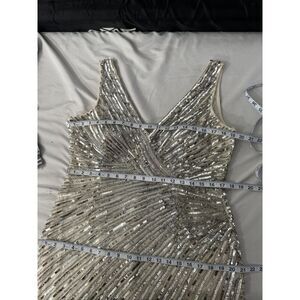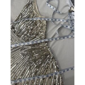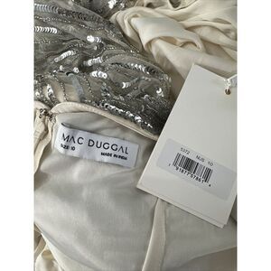 NWT $398 Mac Duggal [ 10 ] Sequin Beaded A-Line Gown 5372 in Nude Silver #S1156