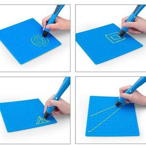 New 3D Drawing Pen or 3D Printer Bundle. 1 Large silicone mat with instruction book, geometric shapes and finger cots. 1 small silicone mat with instruction book, geometric shapes and more finger cots. 1 small starter pack (24 pieces) of assorted color straight filiments. 1 large pack of assorted color coiled PLA filaments (1.75mm and 32 pieces).