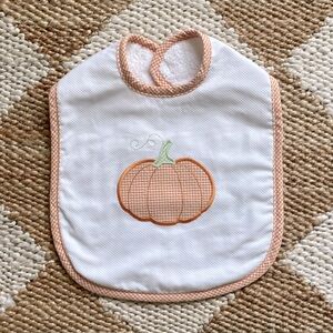 NWT 3Marthas White Cotton Baby Bib with Orange & White Gingham Pumpkin Appliqué