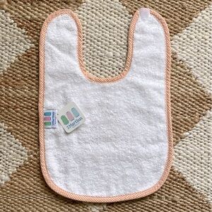 New with tags 100% cotton 3Marthas white baby bib with orange and white gingham appliqué fall pumpkin design. Soft absorbent cotton terry back.
