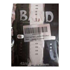 Brand new in package! This is a set of three (3) high-quality silicone sport bands compatible with Apple Watch. A perfect way to switch up your look for the gym, the office, or everyday wear.