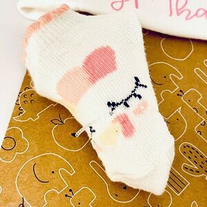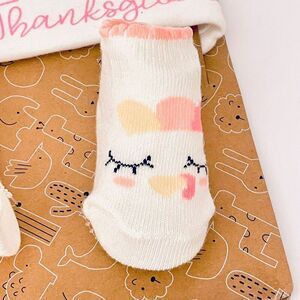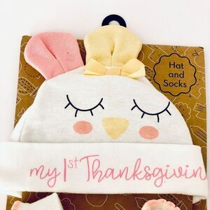 NWT 3Pc Baby Girl 0/6 months White Pink My 1st Thanksgiving ears hat & socks Set