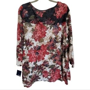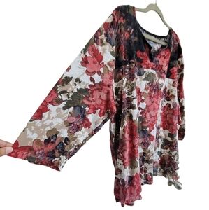 NWT 3X Floral 100% Cotton Multimedia Long Sleeve Tunic