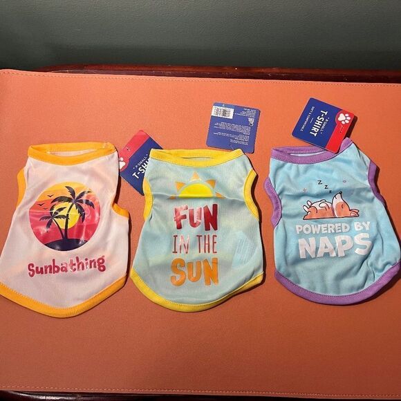 NWT 3pc Dog T-Shirts XSmall Sunbathing Powered By Naps Fun In The Sun Puppy NEW