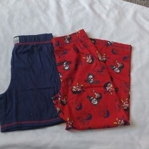1- Pair of blue shorts with red stitching and a 5in inseam.
