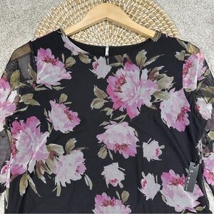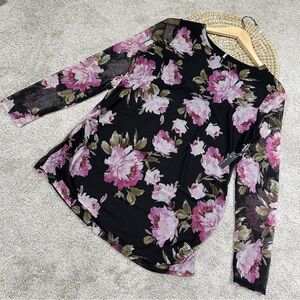NWT 3rd + Malt Sheer Mesh Floral Top Longsleeve Ruched Side Dark Romantic Size L