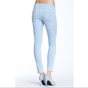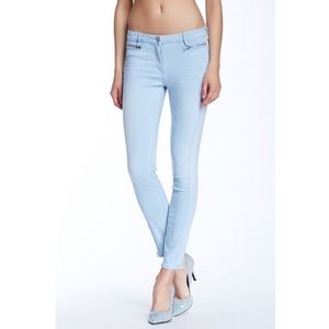 Banded waist. Zip fly and button closure. Stitching detail. 2 back pockets. Zipper front pockets and zippered ankle. Mid rise. Crop. Approx. 8'' rise, 30'' inseam. Color:Light Makai. 92.5% cotton, 5% polyester, 2.5% Lycra.
