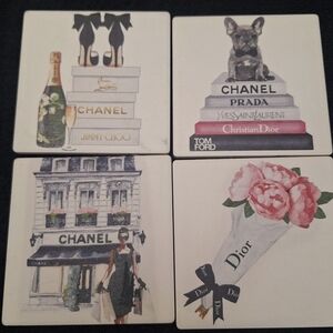 NWT 4 Designer Ceramic Coasters With Sophisticated Design 4x4 Size Beautiful !!