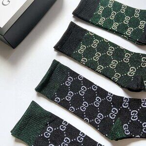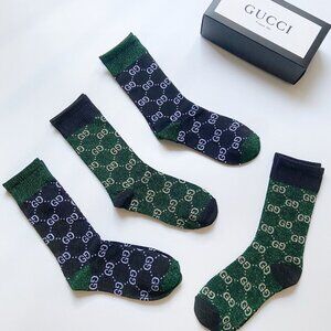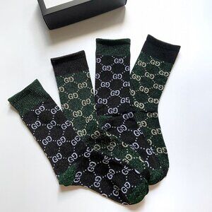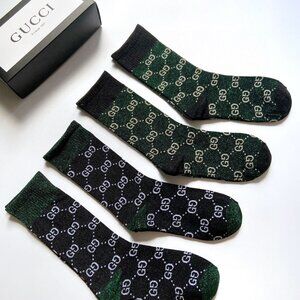 NWT 4 Pairs Gucci Unisex Mid-calf Socks Monogram GG Cotton Socks