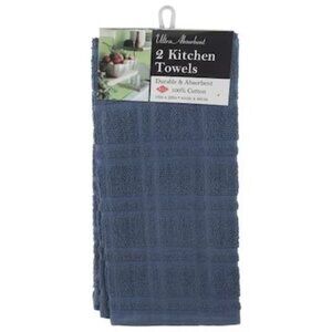 NWT 4 Ritz Kitchen Dishtowels Ultra Absorbent 2 Federal Blue & 2 Titanium Gray Towels 100% Cotton NEW
