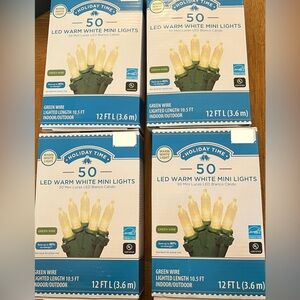 4 brand new boxes Holiday Time 12' LED Mini Christmas Light Set, warm White, 50 Count