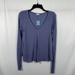 NWT $40‎ Free People [ XS ] Rock The Boat Rib Long Sleeve Tee blue/purple