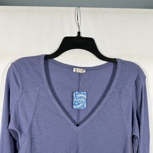 NWT $40 Free People [ XS ] Rock The Boat Rib Long Sleeve Tee blue/purple #T1298