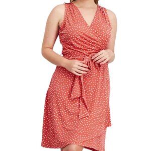 NWT 41 Hawthorn Kaylee Surplice Faux Wrap Polka Dot Knit Dress in Coral/…